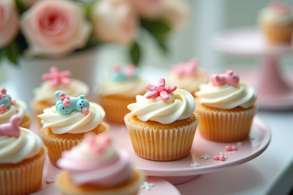 - Baby-Cupcakes: Kleine, liebevoll dekorierte Cupcakes mit Babyschuhen, Schnullern oder Stramplern aus Fondant sind ein echter Hingucker. Achte auf zarte Aromen wie Vanille, Zitrone oder Beeren.