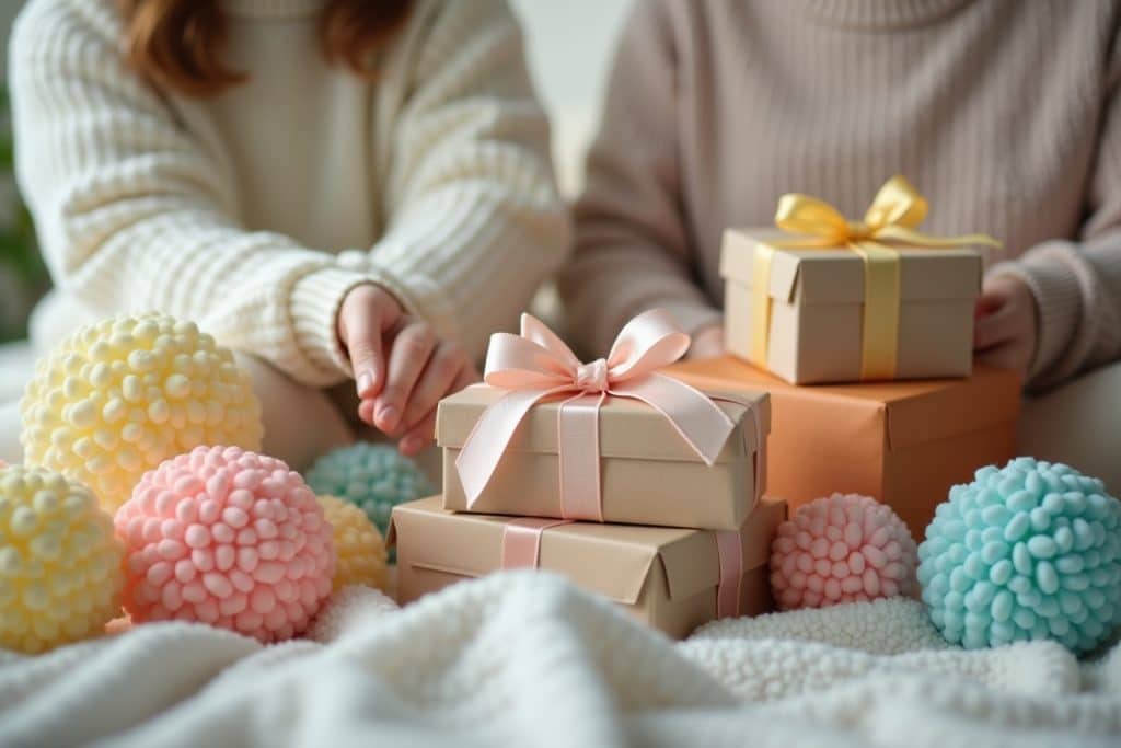 - Handgemachte Geschenke: Gestrickte oder gehäkelte Decken, Mützen oder kleine Kuscheltiere in neutralen Farben sind besonders liebevoll.