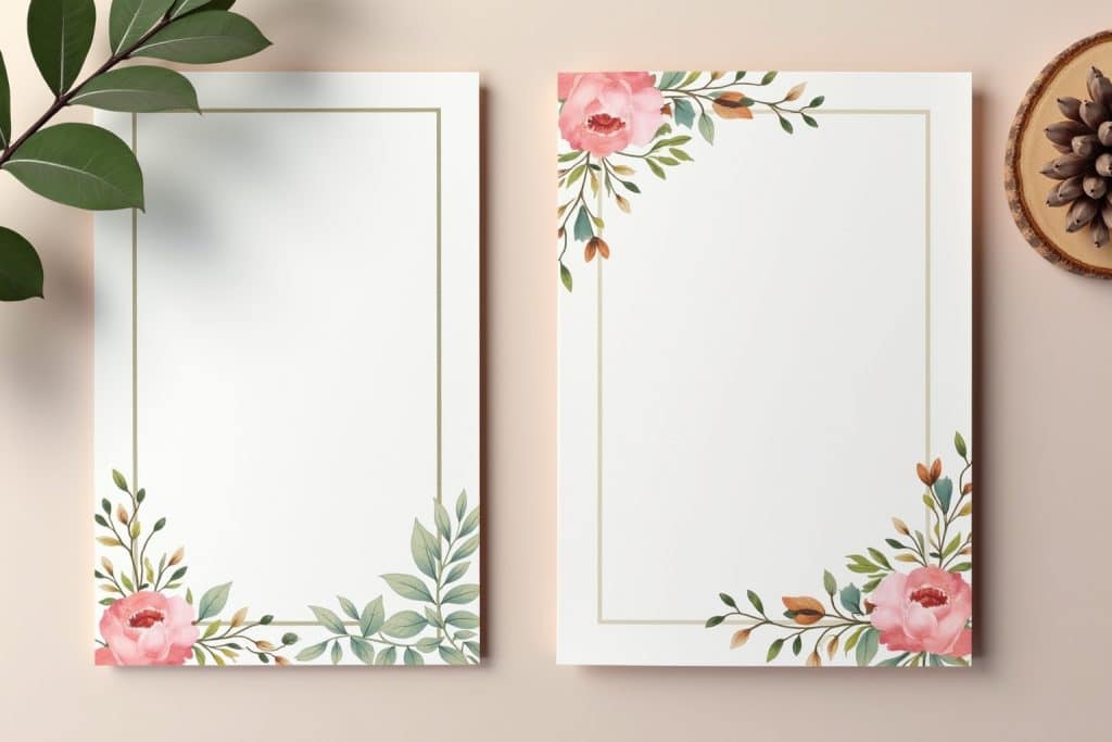- Formate: Gängige Formate für Einladungen sind DIN A6 (Postkartenformat), DIN lang (für längliche Karten) oder quadratische Formate. Dankeskarten sind oft etwas kleiner. Achte auf Standardmaße, falls du passende Umschläge benötigst.