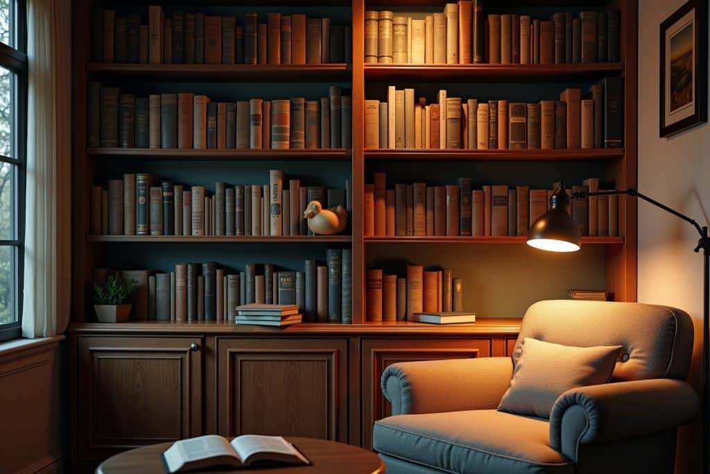 Kleine Aufmerksamkeiten wie Kerzen mit literarischen Düften, Kunstdrucke mit berühmten Zitaten oder Skulpturen, die an Bücher oder literarische Figuren erinnern, können die Leseumgebung verschönern und einen persönlichen Touch verleihen.