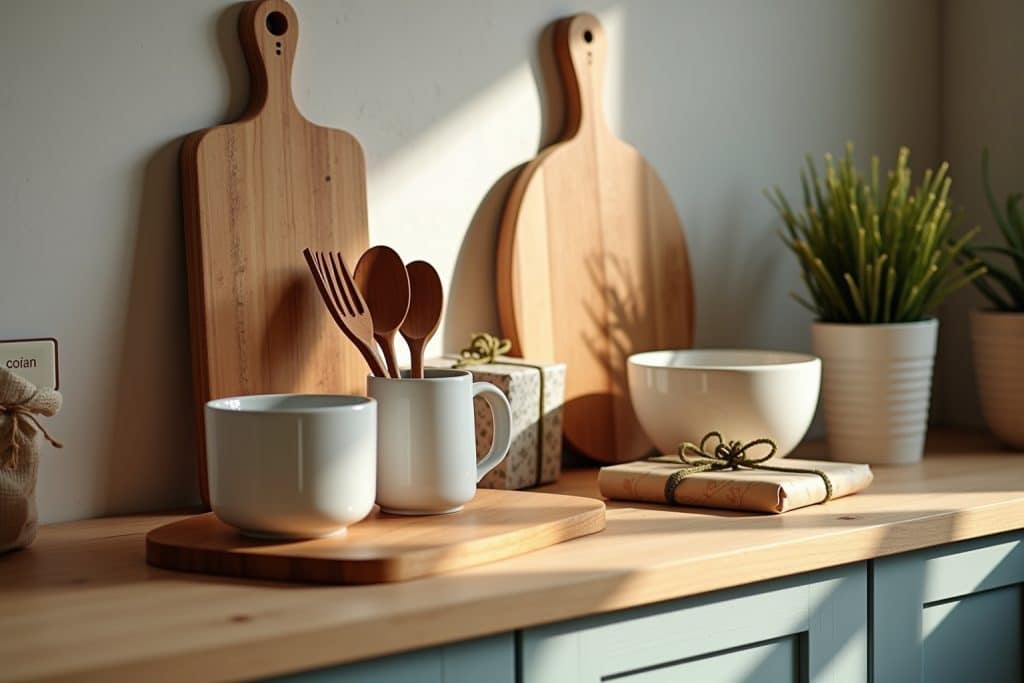 | Design & Dekoration | Stilvolle Küchentextilien, Geschirrtücher, Topflappen, Schürzen, Servierplatten, Vasen, Kräutertöpfe, Wanddeko | Verleihen der Küche Persönlichkeit und Ästhetik. Gut als Ergänzung zu anderen Geschenken oder als dezente Aufmerksamkeit. |