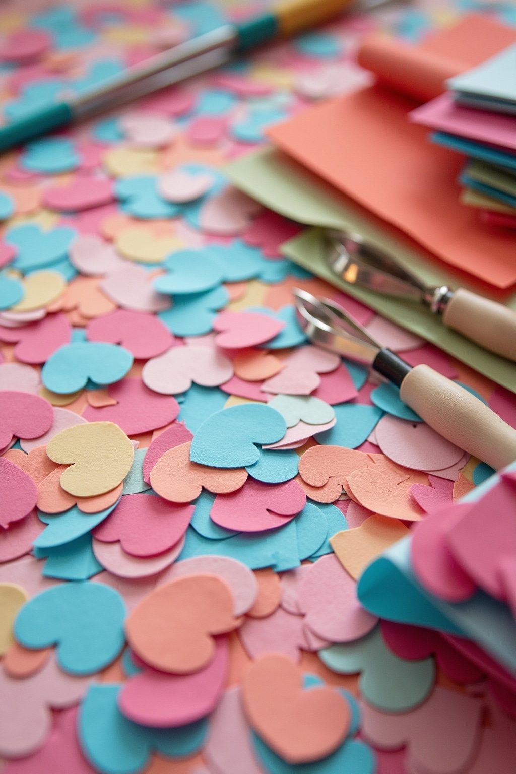 - Konfetti aus verschiedenen Materialien wie Papier, Stoff oder Glitzerfolie ausschneiden
