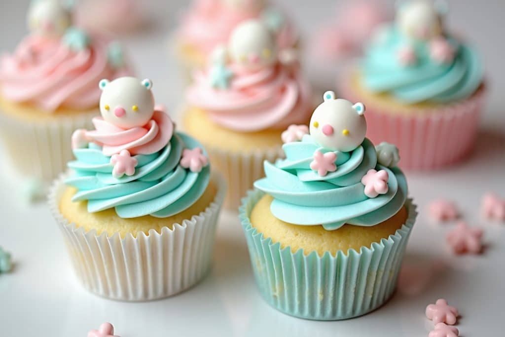- Thematische Muffins – Kreativität pur: Hier wird das Thema der Babyparty aufgegriffen und in kleine Kunstwerke verwandelt.