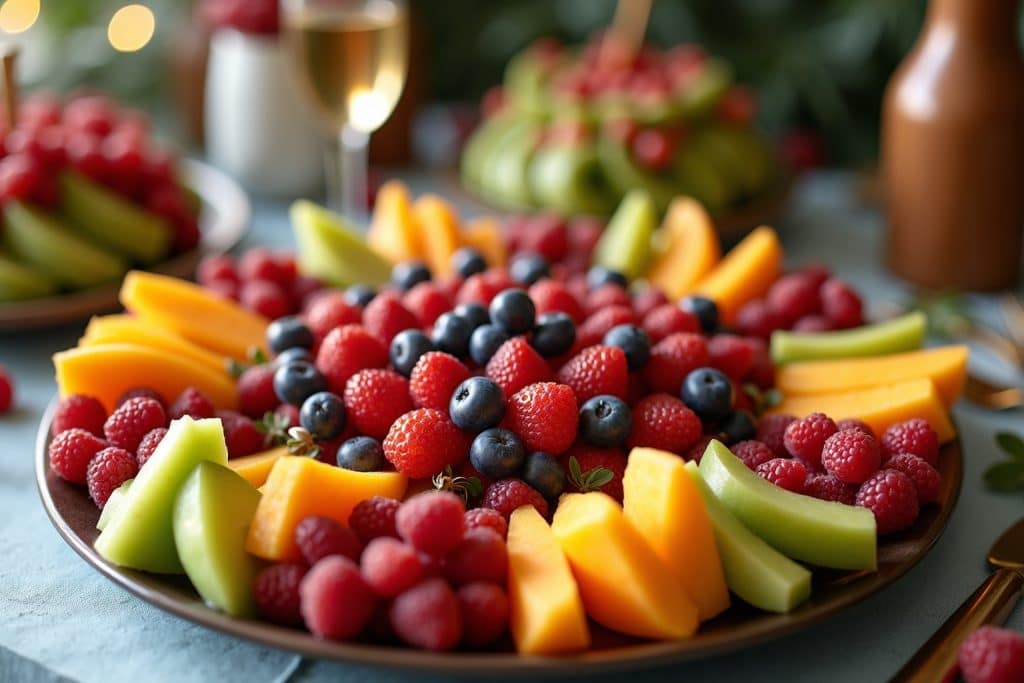 Für Kinderpartys eignen sich besonders bunte und leicht zu essende Früchte. Wassermelone, Erdbeeren, Weintrauben (halbiert, um Erstickungsgefahr zu vermeiden), Bananen, Ananas und Kiwi sind sehr beliebt. Fruchtspieße in Form von bunten Regenbogen oder kleinen Tieren kommen bei Kindern besonders gut an.