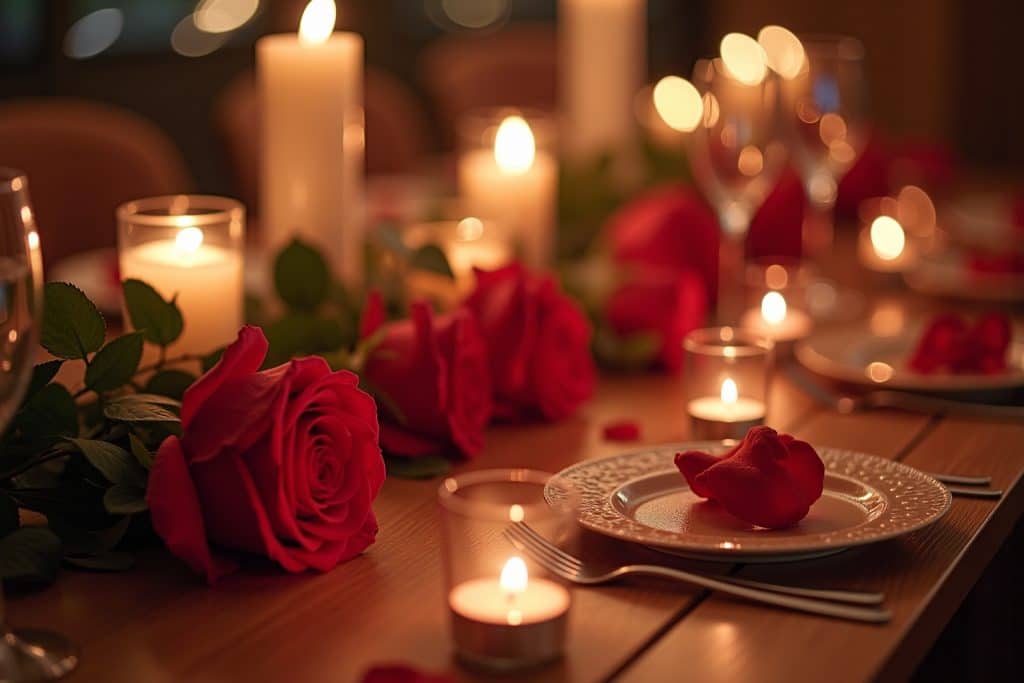 - Kleine Aufmerksamkeiten: Platziere kleine Schokoladenherzen oder eine einzelne Rose auf jedem Teller.